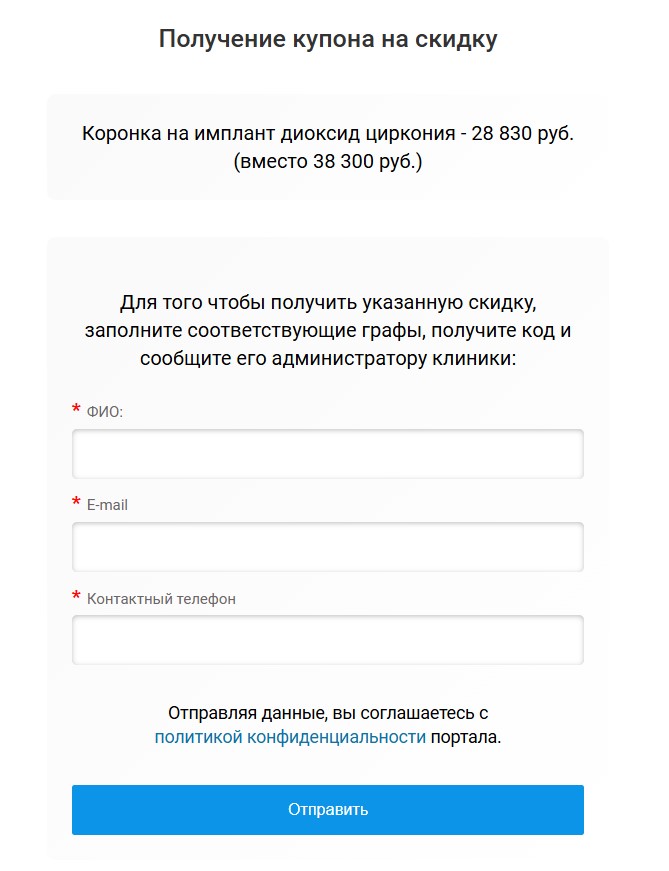 К каждому объявлению при желании можно прикрепить специальный купон. Пользователь, введя свой e-mail и телефон, получает купон со специальным кодом, предоставляющий скидку на заданных вами условиях.